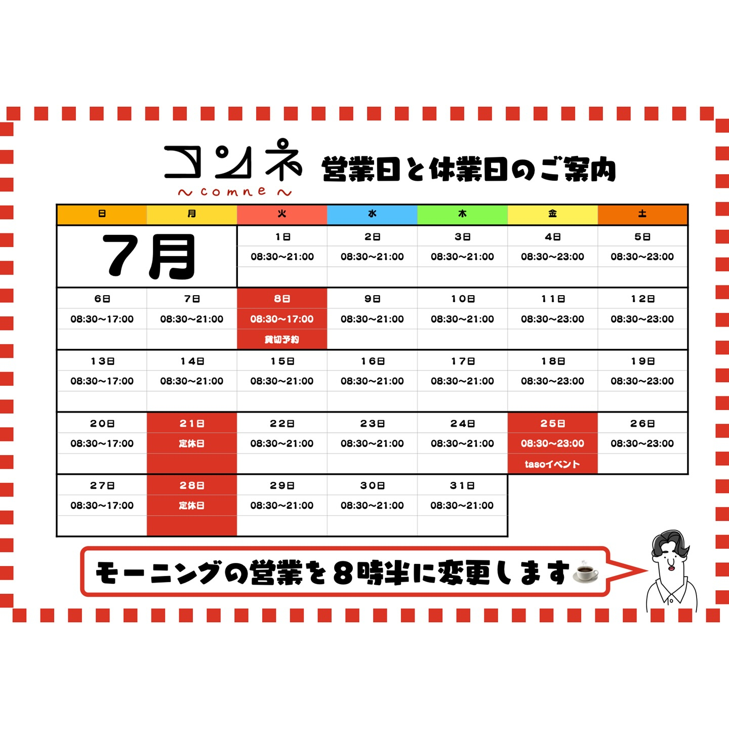 あの、、大変申し上げにくいんですけど、来週の月曜日から定休日を設けさせてください